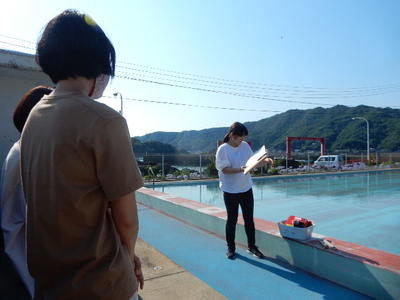 これまでヒラメや車エビの稚魚放流を経験させていただきましたが、今日はマダイの放流を体験しました。稚魚のつかみ方にも慣れてきたのか、これまで以上にスムーズに放流できていたと思います。