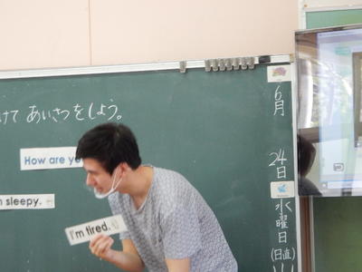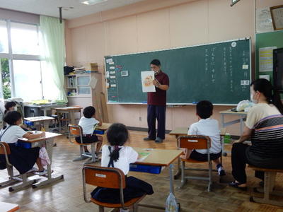 本日、新しいALTのセオドア先生が着任され、歓迎会を実施しました。7月末にアメリカから日本に来られたばかりで、今、日本語の勉強中なのだそうです。しかし、自己紹介では、流暢な日本語でスピーチされました。早速、1時間目から6年生の授業に入っていただきました。出身地やご家族のことについて話され、子どもたちも笑顔で授業を受けていました。