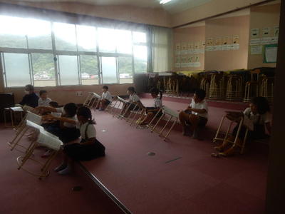 校長室で仕事をしていると、体育館の方から「鉄腕アトムのテーマ曲」が軽快に流れてきました。音楽に惹かれて体育館へ向かうと、11月の天草郡市音楽会に向けて、本校の3・4年生が一生懸命練習している姿がありました。演奏は以前よりも力強くなり、音のまとまりや集団としての一体感も感じられるようになってきました。すばらしい!