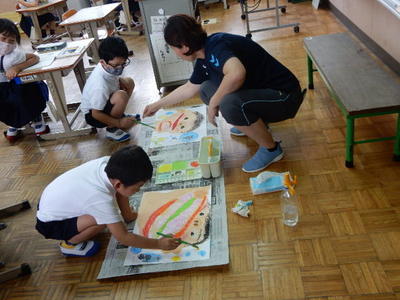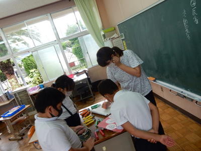 外は雨ですが、雨を吹き飛ばす、子どもたちと先生たちの営みが、御所浦小では今日も展開されました・・・。