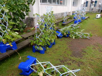 育ったアマモの苗は、自然に戻る素材のポットに入れてそのまま植えます・・・。