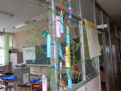 廊下に並んだ七夕飾り。思い思いの願いが綴られた短冊に目を通すと、心が温かくなります。「てっぽうのおもちゃをかってもらえますように」「つりとはぜとりがじょうずになりますように」「おけしょうがじょうずになりますように」「成人したら先生とお酒がのめますように」・・・職員も児童も、それぞれの願いが叶うといいですね。