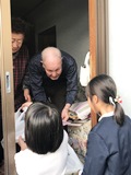 天草市子ども民生委員としての活動の一環で,子どもたちが地域のおじいちゃん・おばあちゃんにお弁当を配ります。