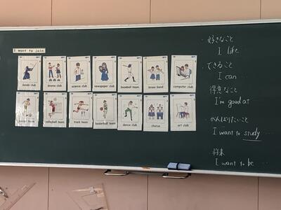 6年生、外国語科の学習です。さすが、小学校の学びの集大成である6年生。これまでに学習したいくつかの表現を使って、自分の紹介をしていました。