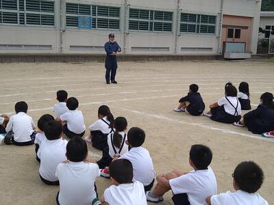 本日は、不審者対応避難訓練でした。駐在所の川越様ご指導のもと、不審人物への対応、児童の避難、職員訓練を実施しました。真剣な眼差しで話を聞く子どもたちの姿がよかったです。児童も職員も危機管理の意識を高めることができました。地域も本校も支えてくださる川越様に感謝しかありません。