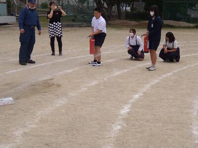 6年生・5年生の代表児童が消火の実践をしてくれました。