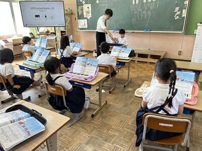 1年生。指づかいに気を付けてけん盤ハーモニカ発表会。みんなとっても上手でした。