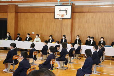 本日、東京都の明星大学の学生さん8名が、本校の教育活動の視察訪問に来校されました。皆さんは、へき地教育について自主的に学習をされている方々で、高い志を持たれています。歓迎会では、はつらつとした学生さんの姿に、子どもたちの目も輝いていました。3日間という短い期間ですが、御所浦小の子どもたちとの交流を満喫してほしいと思います。