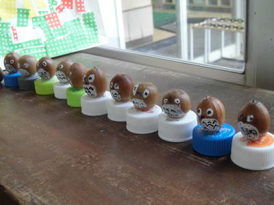 (ドングリクイズの答え)「右から6番目のドングリがなんかいやなことがあったみたいでそっぽを向いている」でした。