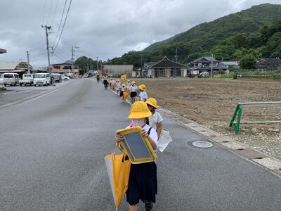 しかし、1年生が町探検に行く10時30分から12時までは、晴れ間ものぞかせる天気で1年生も大喜び。