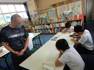 今日は、天草市教育委員会の先生、御所浦中学校の先生、東京からの学生さん(キャラバン隊)が来校されました。2時間目の5年生の国語の授業では、タブレット端末に自分の考えを残しながら、話し合いが行われました。児童は、緊張しながらも話し合いが少しずつ活発になっていく姿が見られました。緊張の中での授業、これも大切な経験です。