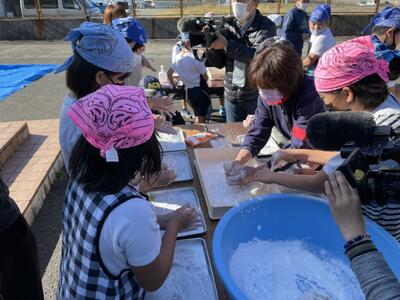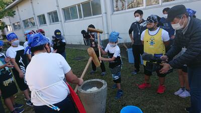 子どもたちの歓喜の中、もちをつきます!