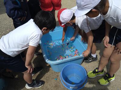 朝から子どもたちに囲まれる「ごしょっこ水族館」。今日も「わあ、きれいになってる!」と声をあげながら、1・2年生の子どもたちが水槽をのぞき込んでいました。昨日の放課後、保護者の方が掃除と海水の入れ替えをしてくださったおかげです。水槽の中では、鯛の稚魚がすくすくと成長しています。