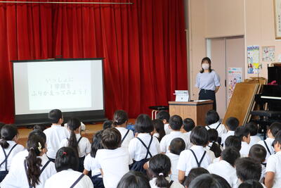 最後に「自分の命は、自分で守る」。先日は福岡県や秋田県で災害がおきました。ニュースで見た人も多いと思います。また、最近、事故の現場をよく見ます。いろんなことに気をつけた夏休みであったほしいと思います。