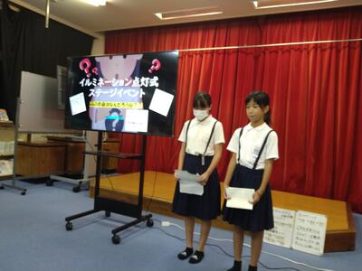 11月29日(土)、イルミネーションの点灯式に参加しました。13時からは6年生企画のマーケットが開店し、会場を盛り上げてくれました。続いてカラオケ大会などの企画もあり、楽しい雰囲気に包まれました。さらに、完成度の高い6年生によるカウントダウン動画が上映され、その後のイルミネーション点灯を一層盛り上げてくれました。これから1月9日までイルミネーション事業は続きます。