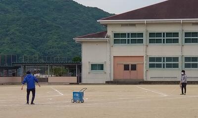 今日の昼休み、大谷選手からいただいたグローブをはめて、担任の先生を相手にキャッチボールをする児童の姿を発見!大谷選手の二刀流復帰の次の日に、こんな光景を御所浦小学校運動場で見ることができるとは、何とも幸せです。ボールがグローブにおさまったときの「パシッ」という音が、心地よく感じられた昼休みでした。