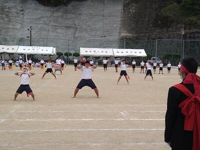 中学生赤団白団の演舞を見て小学生から「かっこよかった!」「すごーかった!」などの感想がたくさん上がっていました。中学生の動きや所作の一つ一つを見て「中学生に憧れる」、とってもすてきな小中連携の一コマだなあと思いました。