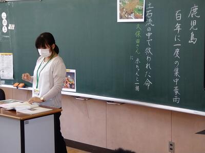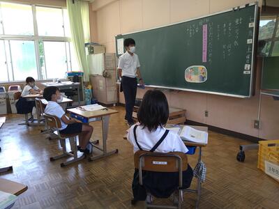 今日は、天草市教育委員会の先生、御所浦中学校の先生、東京からの学生さん(キャラバン隊)が来校されました。2時間目の5年生の国語の授業では、タブレット端末に自分の考えを残しながら、話し合いが行われました。児童は、緊張しながらも話し合いが少しずつ活発になっていく姿が見られました。緊張の中での授業、これも大切な経験です。