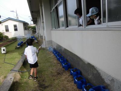 3年生と2年生と1年生は朝から水かけをがんばっています・・・。