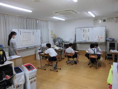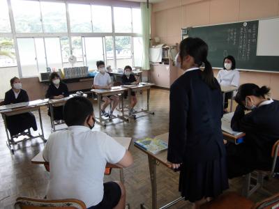 今日は、天草市教育委員会の先生、御所浦中学校の先生、東京からの学生さん(キャラバン隊)が来校されました。2時間目の5年生の国語の授業では、タブレット端末に自分の考えを残しながら、話し合いが行われました。児童は、緊張しながらも話し合いが少しずつ活発になっていく姿が見られました。緊張の中での授業、これも大切な経験です。