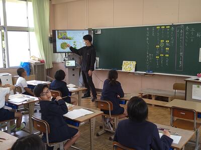 今日は、天草市教育委員会の先生、御所浦中学校の先生、東京からの学生さん(キャラバン隊)が来校されました。2時間目の5年生の国語の授業では、タブレット端末に自分の考えを残しながら、話し合いが行われました。児童は、緊張しながらも話し合いが少しずつ活発になっていく姿が見られました。緊張の中での授業、これも大切な経験です。