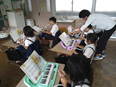 2年生は鍵盤ハーモニカで「こぎつねこんこん」の特訓中です。秋ですね。