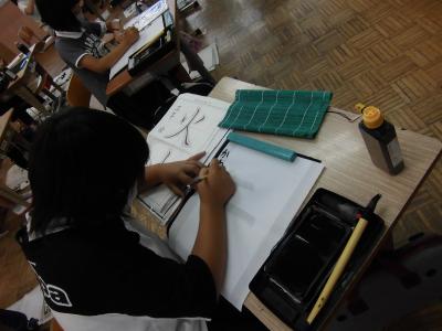 3年生、毛筆・・・。