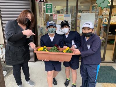 天草消防署御所浦分署やしおさい館に育てたパンジーのプランターを届けに行きました。