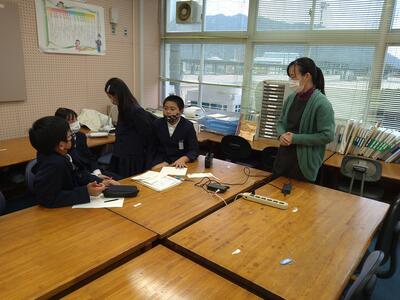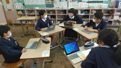 今日は、天草市教育委員会の先生、御所浦中学校の先生、東京からの学生さん(キャラバン隊)が来校されました。2時間目の5年生の国語の授業では、タブレット端末に自分の考えを残しながら、話し合いが行われました。児童は、緊張しながらも話し合いが少しずつ活発になっていく姿が見られました。緊張の中での授業、これも大切な経験です。