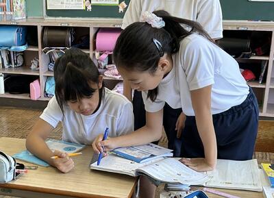 1年生。大好きな漢字の学習。4月は、ひらがなの学習をしていた子供たちが、今では、漢字を書くことに集中して取り組んでいます。子どもの成長ってはやいものですね。