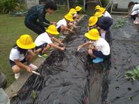 1・2年生もわくわくのの芋苗植えです。