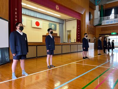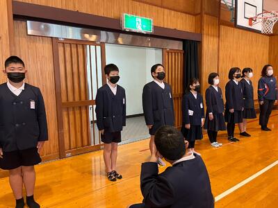 7月8日(火)本校ホールにて、御所浦小学校少年消防クラブの入部式が行われました。天草広域連合御所浦分署から署員3名にご来校いただきました。入部式では、規律訓練や講習も実施され、早速気合いが入った子どもたちです。小さな防災リーダーとして、御所浦の安全を守ってくれることでしょう!
