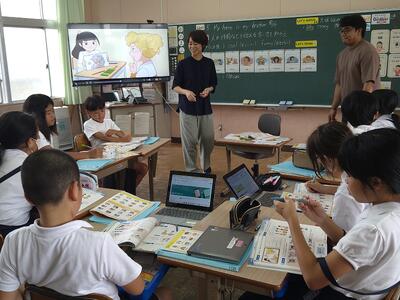今日は、天草市教育委員会の先生、御所浦中学校の先生、東京からの学生さん(キャラバン隊)が来校されました。2時間目の5年生の国語の授業では、タブレット端末に自分の考えを残しながら、話し合いが行われました。児童は、緊張しながらも話し合いが少しずつ活発になっていく姿が見られました。緊張の中での授業、これも大切な経験です。