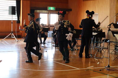 音楽隊は30名ほどの構成、小学生、地域の皆さん含めて観客も200名を超える人数がありました。