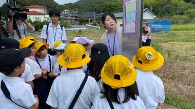 4年生が社会科の学習の一環として、御所浦クリーンセンターを見学しました。所員の方々には、ゴミ処理の仕組みについて丁寧に説明していただき、子どもたちは一生懸命にメモを取っていました。見学の中では、御所浦仕様のゴミ収集車に実際にゴミ袋を投入する体験もさせていただきました。毎年ご協力いただいているおかげで、子どもたちの学びがより深まっています。
