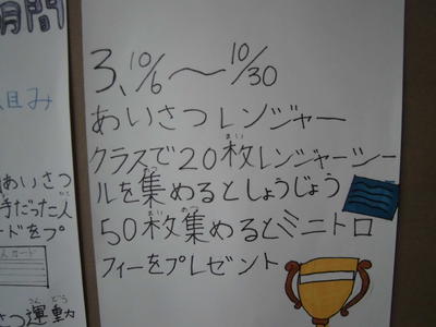 朝のあいさつ運動ですが、児童会コーナーにこんな「知らせる方法の工夫」があります・・・。