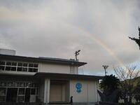 今朝、学校前で撮影したものです。なんと、きれいな虹が御所浦の空にかかっています。
