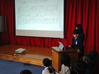 4年生は、つなしの会で学習のことや将来の夢について発表します。ひとつ、ふたつ、みっつ、・・・ここのつ、とお。10歳(とお)を迎える4年生は、これまでの「つ」が付かなくなります。だから「(つ)なし」です。自分の思いをプレゼンでしっかりと伝えられる成長ぶりを見せています。