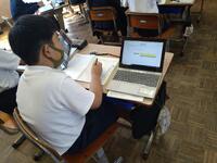 今日は、天草市教育委員会の先生、御所浦中学校の先生、東京からの学生さん(キャラバン隊)が来校されました。2時間目の5年生の国語の授業では、タブレット端末に自分の考えを残しながら、話し合いが行われました。児童は、緊張しながらも話し合いが少しずつ活発になっていく姿が見られました。緊張の中での授業、これも大切な経験です。