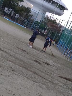 4年生が朝からボランティア活動を行ってくれます。最近草刈りをしたところをきれいに集めくれました。