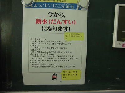 と、3年生と4年生のマラソン応援から戻ってくると、漏水が見つかったので、ただいまから断水しますとの連絡・・・。