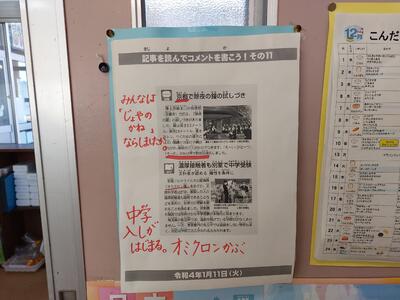 新聞記事にコメントを書くシブコメも、低学年は先生が書き込んで補説しています・・・。