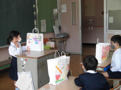 お礼の手紙を書く5年生の机上には2パックずつの・・・。