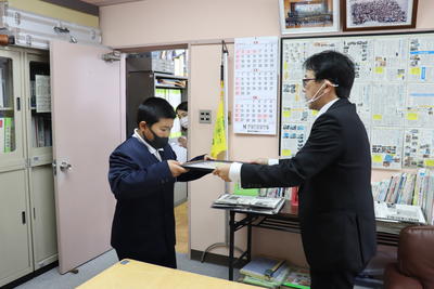 3時間目には、4年生が「天草市子ども民生委員 委嘱状交付式」に参加しました。多くの民生委員の皆様に見守られ、脇島会長から委嘱状を受け取った子どもたちは、民生委員としての活動をスタートさせました。その後、認知症サポーター養成講座を受けた4年生、気持ちが引き締まったことと思います。