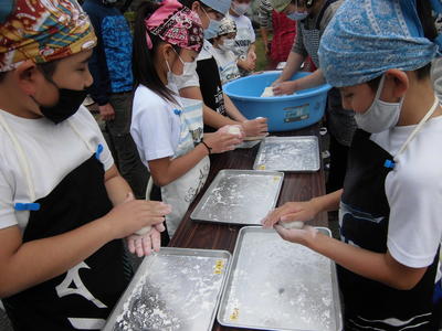 山﨑さん、子どもたち、そして手伝う担任以外の先生たちの働きにより、非常に効率的にもちつき大会は進行しました。