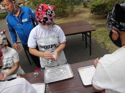 コロナ等感染症対策、自分のおもちは自分のトレイで自分でまるめています・・・。