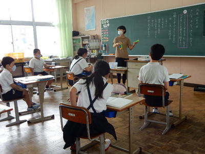 今日は、天草市教育委員会の先生、御所浦中学校の先生、東京からの学生さん(キャラバン隊)が来校されました。2時間目の5年生の国語の授業では、タブレット端末に自分の考えを残しながら、話し合いが行われました。児童は、緊張しながらも話し合いが少しずつ活発になっていく姿が見られました。緊張の中での授業、これも大切な経験です。