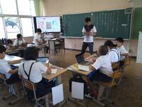 今日は、天草市教育委員会の先生、御所浦中学校の先生、東京からの学生さん(キャラバン隊)が来校されました。2時間目の5年生の国語の授業では、タブレット端末に自分の考えを残しながら、話し合いが行われました。児童は、緊張しながらも話し合いが少しずつ活発になっていく姿が見られました。緊張の中での授業、これも大切な経験です。