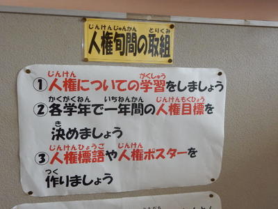 御所浦小の人権旬間にあわせて、家庭でも、優しさとか思いやりとか、たくさん話をしていただければ幸いです。