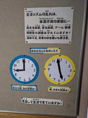 明日から寒くなるそうです。保健室横の掲示板には「寒さに負けず元気に過ごそう」の掲示。生活リズムがくずれないよう気をつけていきましょう。